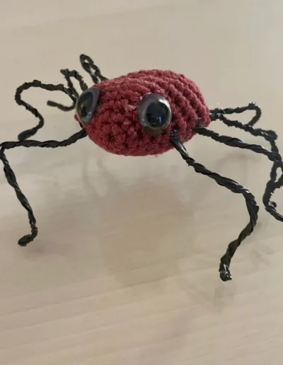 Le sac est fourni avec une fourmi, une abeille, un bourdon, une araignée crochetés à la main, et un oiseau acheté dans le commerce.